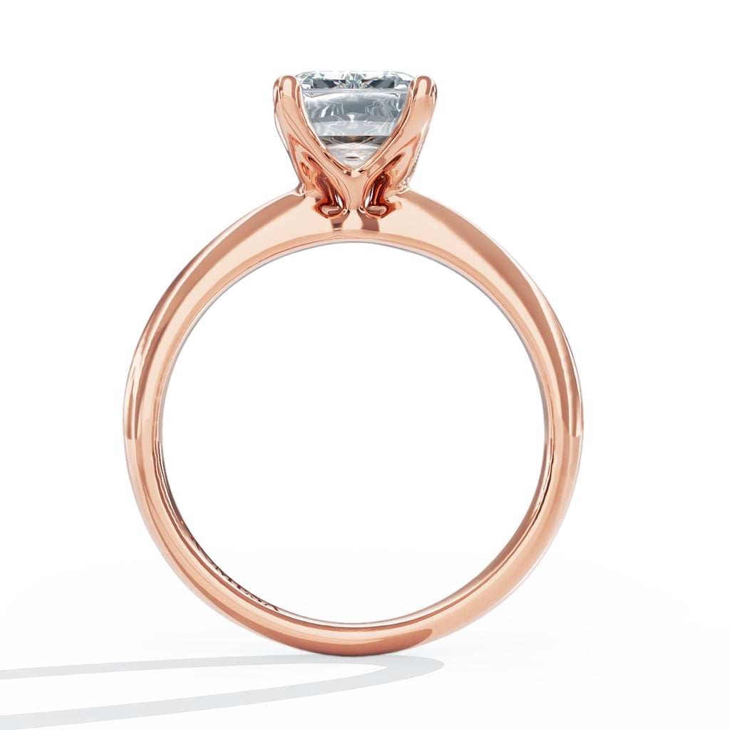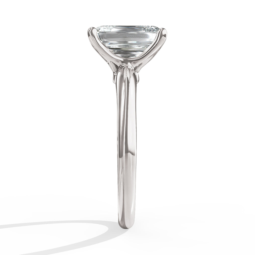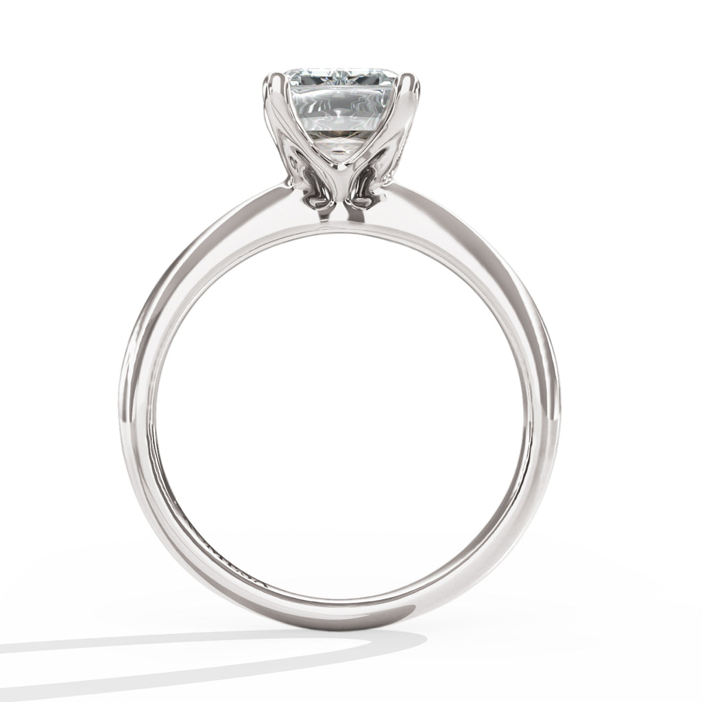 El brazo estilo acuchillado, con un grosor de 2.3 mm, ofrece un perfil definido que refleja precisión artesanal. Su corona de cuatro uñas, inspirada en el diseño de corona real, sujeta firmemente la piedra y realza su presencia.
