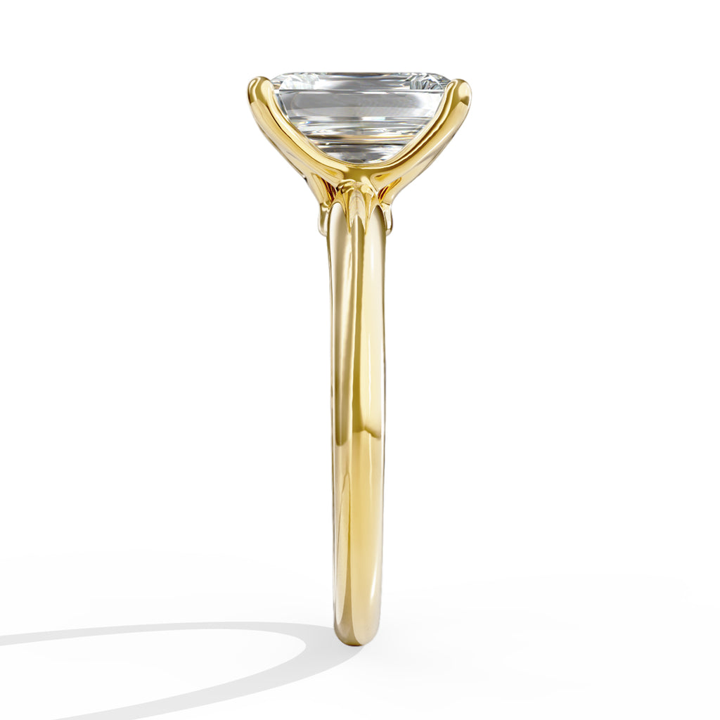 Un anillo de compromiso clásico que por su centro corte esmeralda alargado siempre será la decisión más elegante y acertada para una mano de dedos largos.