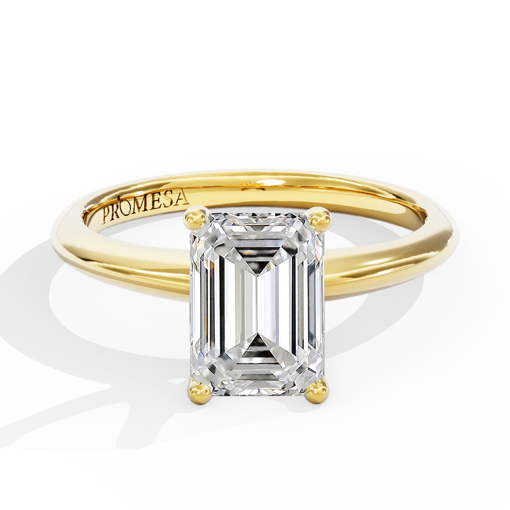 Alma Esmeralda es una reinterpretación moderna del icónico solitario clásico. Su piedra central en corte Esmeralda es el punto focal de este diseño, donde la elegancia de las líneas rectas y el juego de luces brindan un efecto visual limpio y sofisticado.