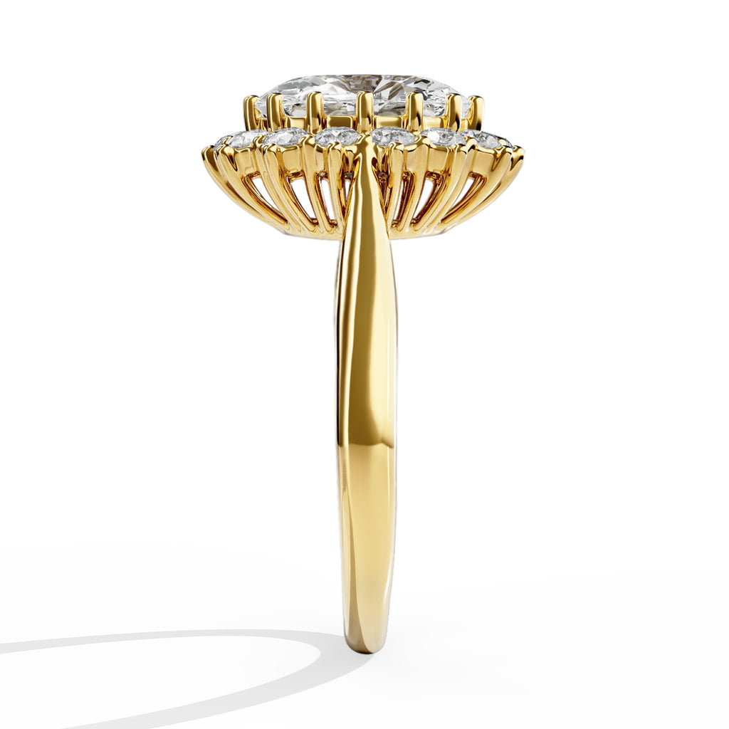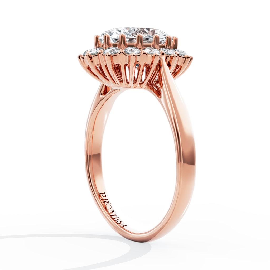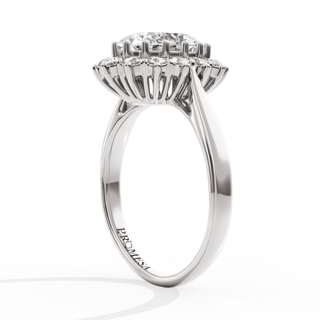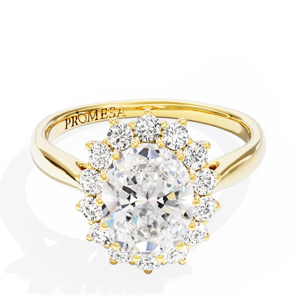 El anillo Princesa Diana rinde homenaje a la realeza con una silueta que ha trascendido el tiempo. La piedra central, en corte oval, se alza como protagonista indiscutible, rodeada por un halo de gemas que evocan la majestuosidad de una corona.