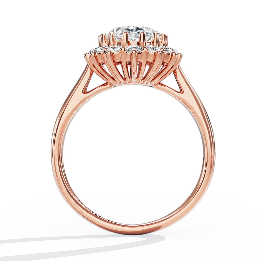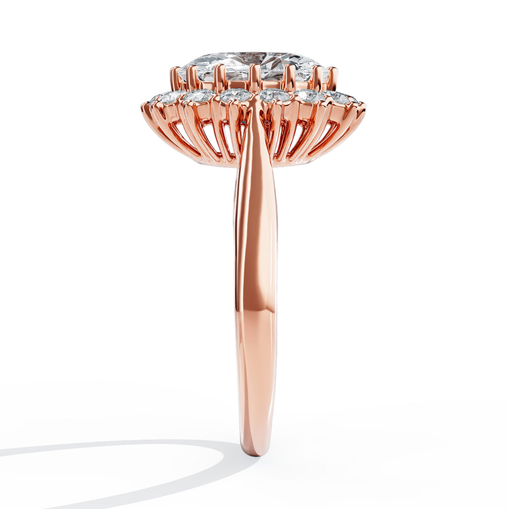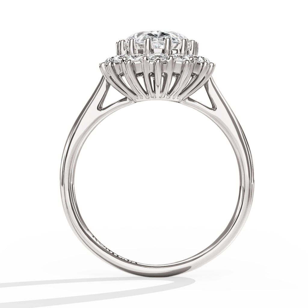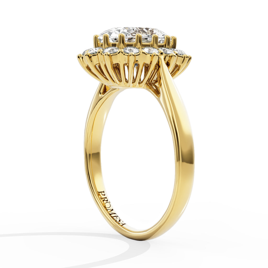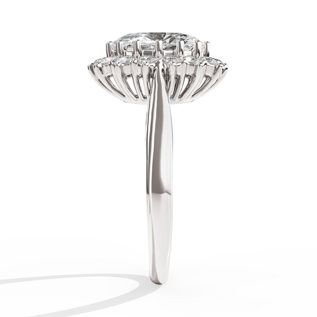 El anillo Princesa Diana rinde homenaje a la realeza con una silueta que ha trascendido el tiempo. La piedra central, en corte oval, se alza como protagonista indiscutible, rodeada por un halo de gemas que evocan la majestuosidad de una corona.
